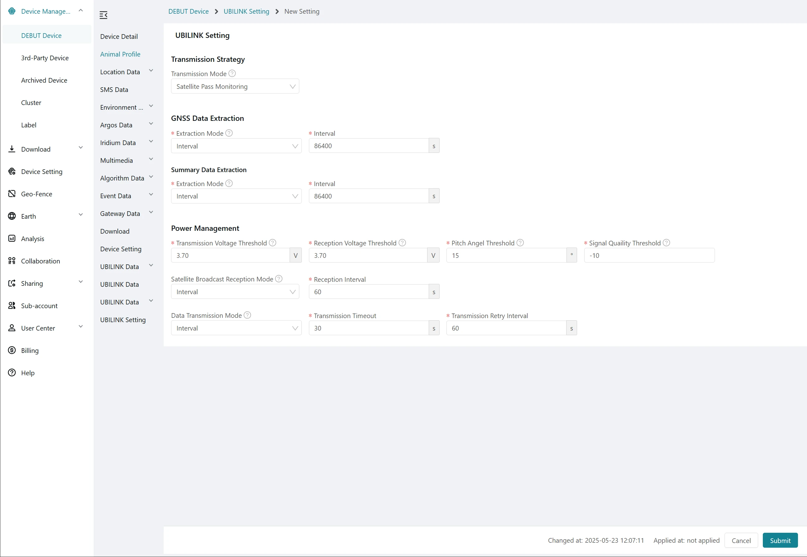 Users can now view data from UBILINK devices and manage their settings. UBILINK stands for "Ubiquitous Link"—a satellite-relayed communication technology that enables data exchange between devices and servers. It overcomes geographic limitations and provides coverage in network blind spots such as polar regions, oceans, and deserts, ensuring reliable, long-distance, and cross-time-zone monitoring for wildlife tracking and other critical applications.